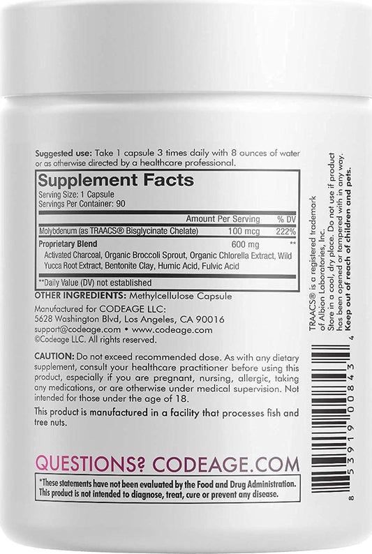 Codeage Binder + Systemic Binder Supplement - Activated Charcoal Pills, Bentonite Clay Mineral Powder, Fulvic and Humic Acids, Molybdenum, Carbon Forms - 90 Capsules