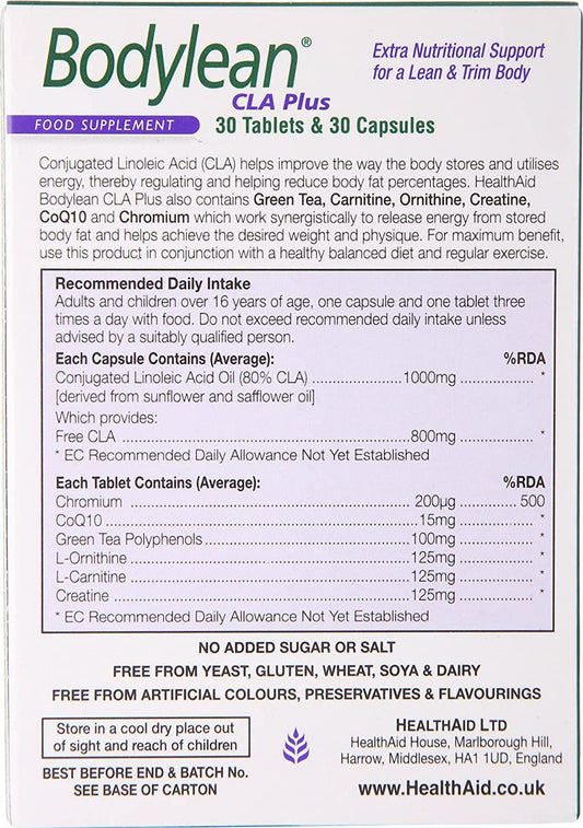 HealthAid Bodylean CLA Plus - (Conjugated Linoleic Acid, Co Q10, Green Tea) - 30 Capsules and 30 Tablets