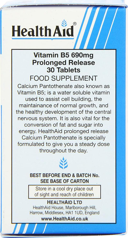 HealthAid Calcium Pantothenate (Vitamin B5) 690mg - Prolong Release - 30 Tablets