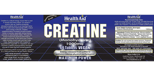 HealthAid Creatine Monohydrate 1000mg - 60 Tablets