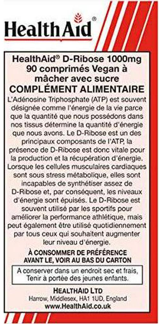 HealthAid D-Ribose 1000mg 90 Vegan Tablets