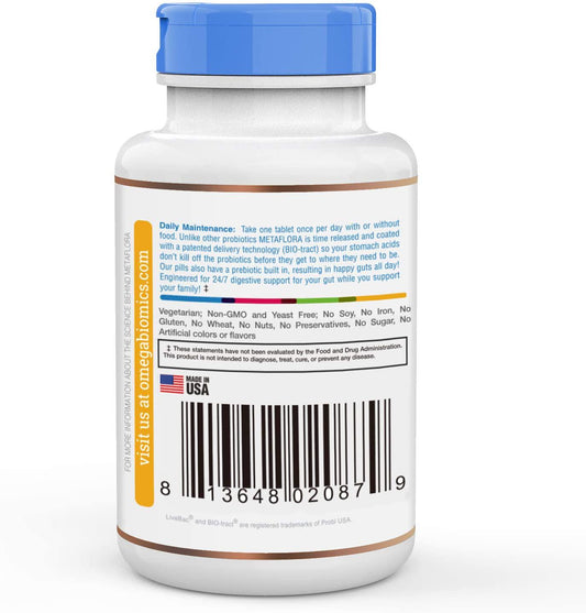 METAFLORA Probiotics Supplement-30 Pearl Tablets-Digestive Supplement Formula- Time Released-Patented Delivery Technology-Easy to Swallow