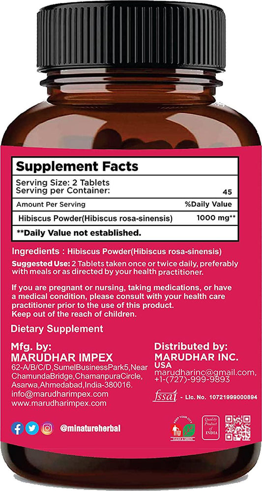 Hibiscus Tablets by mi Nature | 90 Tablets, 1000 mg | 45 Days Supply | Hibiscus Flower Tablets | Vegan | Increases Immunity| Weight Loss | Antioxidant | Healthy circulatory system