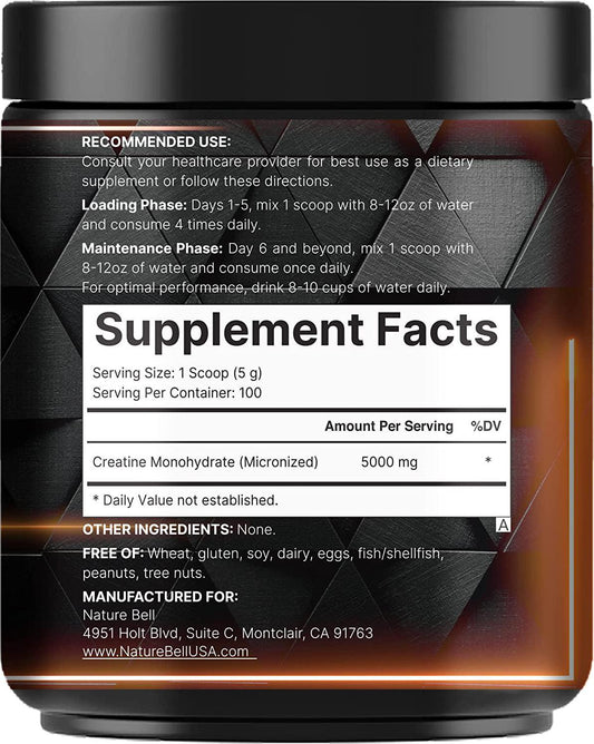 Naturebell Creatine Monohydrate Powder 500 Grams, 5000mg Per Serving, Pure Unflavored Creatine Powder - Micronized - Pre Workout | Keto | Vegan | Dissolves Easy | Filler Free - 100 Servings (1.1Lb)