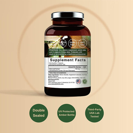 NatureBell Organically Grown Olive Leaf Extract 750mg, 180 Capsules, Active Polyphenols and Oleuropei, Supports Immune and Cardiovascular Health, Non-GMO and Made in USA