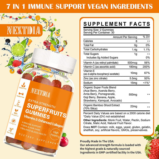 Superfruit Vegan Collagen Gummies with 500mg High Potency Blend, for Enhance Immunity, Support Digestion, Beauty Hair and Skin, Collagen Booster Superfruit Complex Antioxidant Vitamin Gummies -60Cts*2