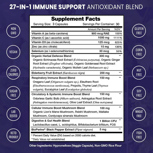Nutrachamps Immune Boost Support Supplement [Elderberry Extract, Vitamin C, Zinc, Echinacea, Mushrooms & Probiotics] Powerful Multi System Defense Booster Pills | 90 Veggie Capsules