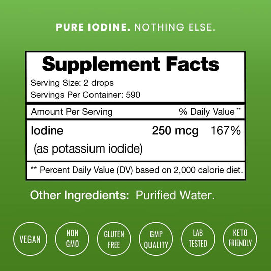 Iodine Drops [Double Size] Vegan Liquid Supplement - Healthy Thyroid, Hormones and Weight - Tasteless Solution, Better Absorption Than Pill, Tablet or Powder - 2oz Tincture 590 Servings