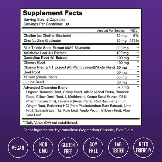 Liver Cleanse Detox and Repair Formula | 25+ Herbs: Milk Thistle Extract with Silymarin, Artichoke, Dandelion, Chicory Root Powder and More! | Premium Liver Support Pills Supplement, 60 Capsules