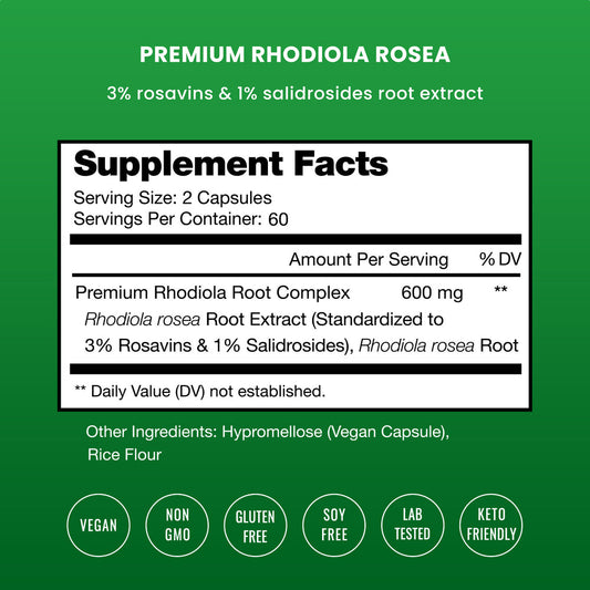 Nutrachamps Rhodiola Rosea Capsules [120] Rosavin plus Salidrosides | Rhodiola Rosea Extract Supplement | 300Mg Vegan Pills | Rhodiola for Energy, Stress Relief, Mood Support and Focus