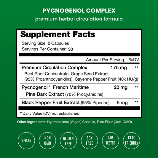Nutrachamps Pycnogenol® Pine Bark - Premium Supplement with Herbal Complex for Circulation, Blood Flow & Nitric Oxide Production - Superior Absorption & Results with Black Pepper Extract