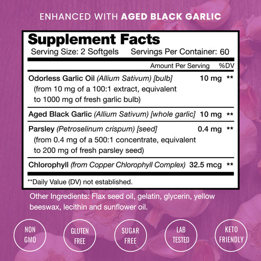 Nutrachamps Odorless Garlic Pills - Extra Strength 1000Mg Dose - Parsley, Chlorophyll & Aged Black Garlic Extract - 120 Softgels
