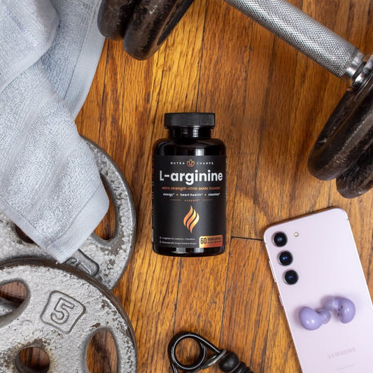 Nutrachamps Premium L Arginine Supplement | 5-In-1 Nitric Oxide Supplement | L-Arginine Powder & L Citrulline Enhanced with Grape Seed & Ginger | Energy, Blood Flow, Heart Health & Stamina | 60 Count