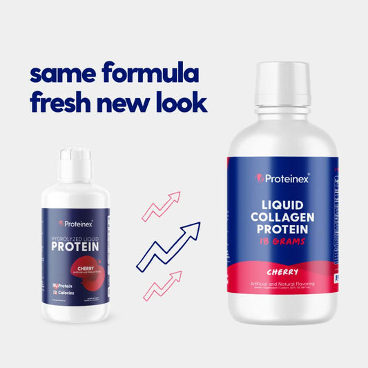 Proteinex Liquid Hydrolyzed Protein Supports Muscle and Joints Recovery - Liquid Collagen for Women and Men for Healthy Skin, Hair and Nails - No Carbs Ready to Drink Protein Drink (Cherry)