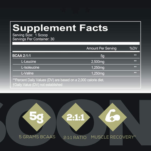 Redcon1 - BCAA, Branched Chain Amino Acids, 30 Servings, 2:1:1, L-Leucine, L-IsoLeucine, L-Valine, Mix with Any Drink, Unflavored - Basic Training Series