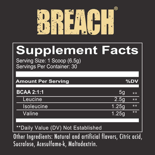 Redcon1 - Breach BCAAs (30 Servings) - Amino Acids, 2:1:1 BCAA Ratio, Increase Recovery, Caffeine Free, Strength and Endurance Support (Strawberry Kiwi)