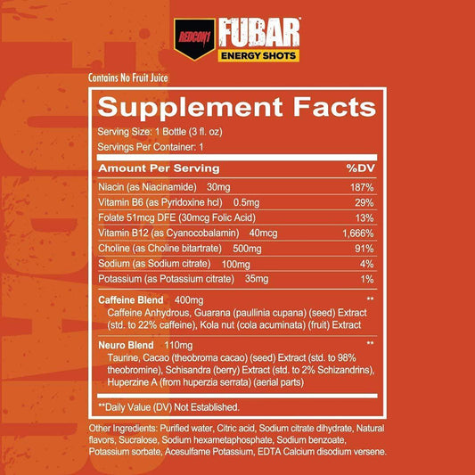 Redcon1 - FUBAR Fueled Up Beyond All Recognition - Case of 12 Energy Shots, Lasting Energy, B Vitamins, Increases Mental Focus, 400mg Caffeine (Orange Crush)