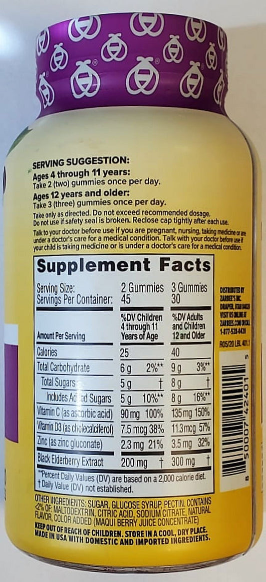 Zarbee'S Naturals Black Elderberry with Vitamins C, D and Zinc 90Ct Gummies