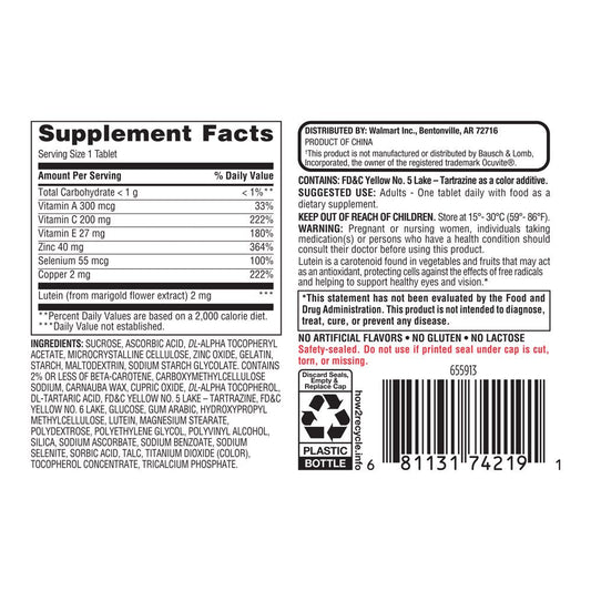 Equate Vision Formula with Lutein Tablets Dietary Supplement, 120 Count
