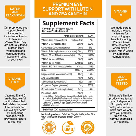 Eye Vitamins with Lutein and Zeaxanthin, Extra Strength Natural Vitamin and Mineral Supplement 1390mg, Made in USA, Areds 2 Premium Vision Formula to Support Dry Eyes and Sensitivity - 120 Capsules
