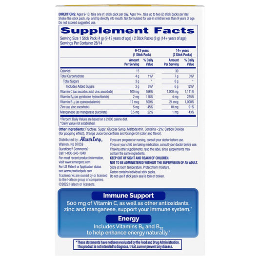 Emergen-C Crystals, On-The-Go Emergen-C Immune Support, Orange Vitality - 28 Stick Packs