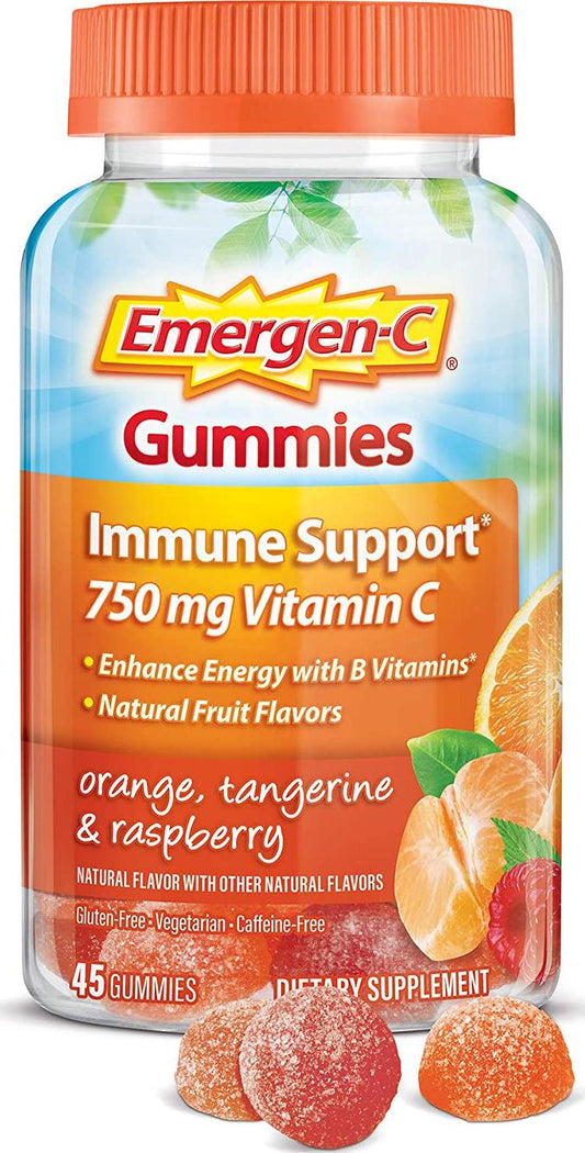Emergen-C Gummies Dietary Supplement with 500 mg Vitamin C Per Serving, Gluten Free (Orange, Tangerine and Raspberry Flavors, 45 Count)