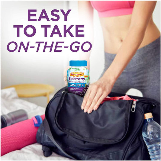 Emergen-C Immune+ Gummies (45 Count, Elderberry Flavor) Immune Support with 750mg Vitamin C, Plus Vitamin D and Zinc, Vegetarian, Caffeine Free, and Gluten Free Dietary Supplement