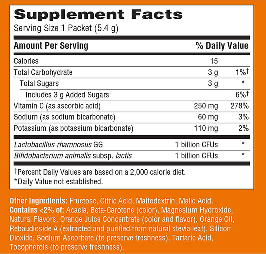 Emergen-C Probiotics+ (30 Count, Orange Flavor) Daily Immune Health Dietary Supplement Drink Mix Plus a Boost of 250mg Vitamin C, 0.19 ounce Packets