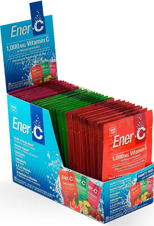 Ener-C Variety Pack Multivitamin Drink Mix, 1000mg Vitamin C, Non-GMO, Vegan, Real Fruit Juice Powders, Natural Immunity Support, Electrolytes, Gluten Free, 1-Pack of 30