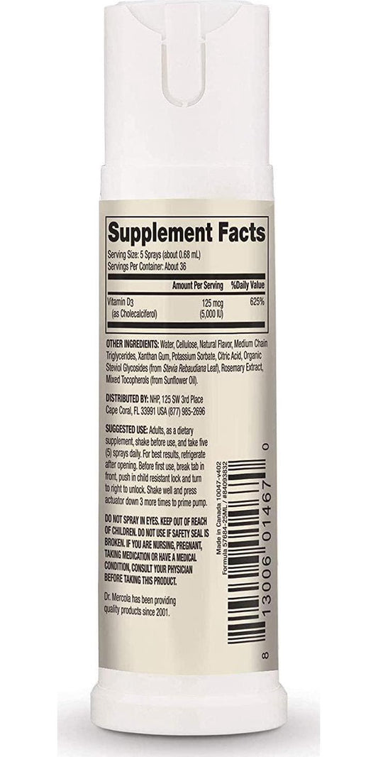 Dr. Mercola Sunshine Mist Vitamin D3 Spray (5000 IU) Dietary Supplement, 0.85 FL. oz. (25 mL)(36 Servings), Supports Heart and Immune Health, Non GMO, Soy Free, Gluten Free