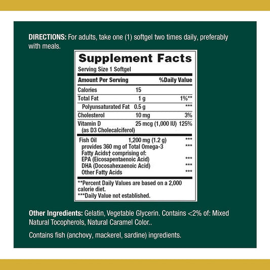 Fish Oil plus Vitamin D3 by Nature's Bounty, Contains Omega 3, Immune Support and Supports Heart Health, 1200mg Fish Oil, 360mg Omega 3, 1000IU Vitamin D3, 90 Softgels