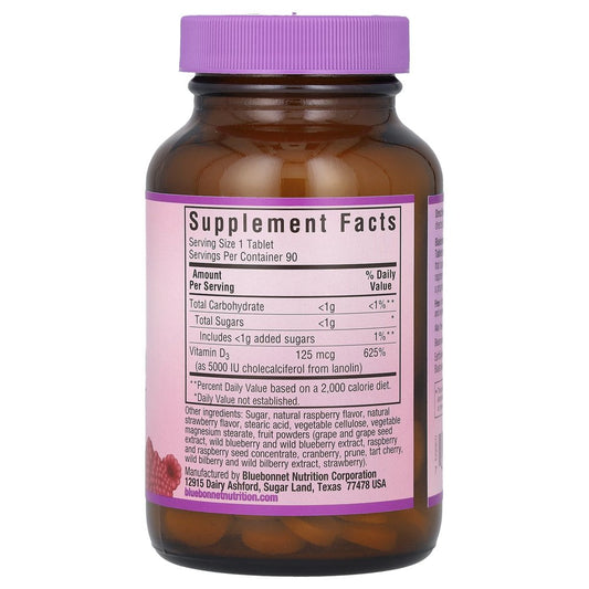 Earthsweet Chewables, Vitamin D3, 5,000 IU, 90 Raspberry Chewable Tablets, by Bluebonnet