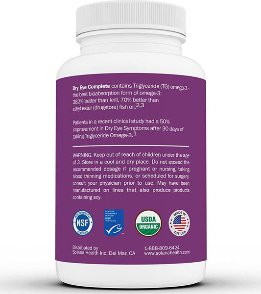 Dry Eye Complete, Formulated for Dry Eyes. Ultimate Vision Health Ingredients: Omega-3, Omega-7, Lutein, Vitamin D3 (2 Month Supply)