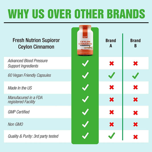 Ceylon Cinnamon Capsules - Blood Pressure Formula Containing Cinnamon Bark Powder and Advanced Blood Pressure Support Complex - Hawthorn Extract - Berberine HCI - Chromium Picolinate and Vitamin D3