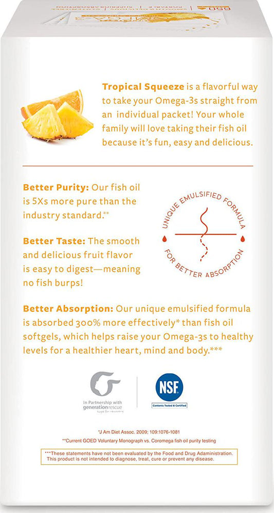Coromega Omega3 Squeeze with Vitamin D3, Tropical Orange, 90 Count (Packaging may vary)
