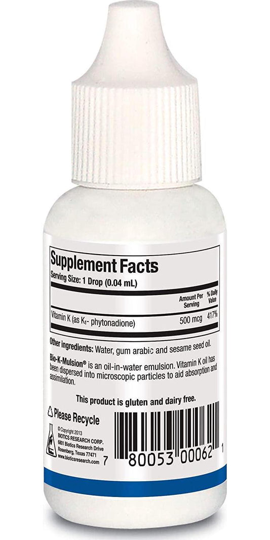 Biotics Research Bio-K-Mulsion - Strong Bones, Heart Health, Blood Clotting Support, Liquid Vitamin K, K1-phytonadione, 500 mcg