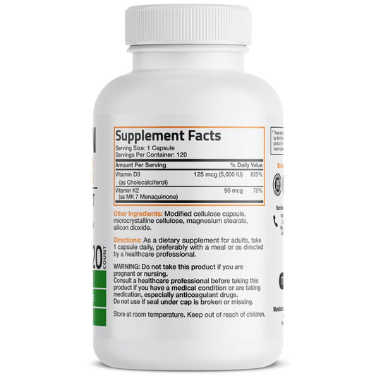 Bronson Vitamin K2 (MK7) with D3 Supplement Bone and Heart Health Non GMO & Gluten Free Formula - Easy to Swallow, 120 Capsules