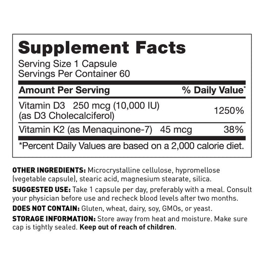 Amy Myers MD Vitamin D3 K2 10000 IU - Vitamin K2 MK-7 45 Mcg - Supports Immune Function, Energy Levels & Positive Mood - for Calcium Absorption, Bone & Heart Health - Non-Gmo 60 Caps - 2 Month Supply