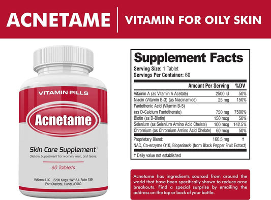 Acnetame Vitamin Supplements For Acne Treatment, 60 Natural Pills …