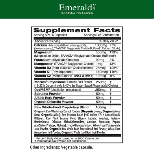 Emerald Labs Osteo Bone Health with Meriva Phytosome, MSM, Vitamin K2 (MK4 and MK7) and Calcium to Support Strong Bones, Joint Strength, and Immune System - 180 Vegetable Capsules