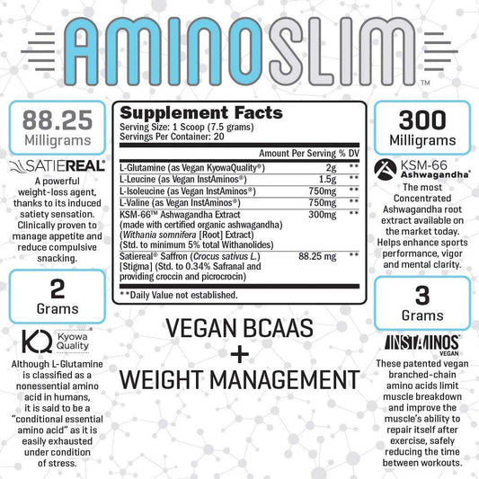 Amino Slim - Slimming BCAA Weight Loss Drink for Women, Vegan Amino Acids and L-Glutamine Powder for Post Workout Recovery and Fat Burning | Daily Appetite Suppressant, Metabolism Booster and Stress Relief