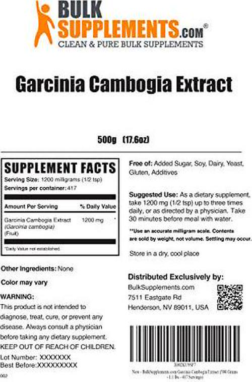 BulkSupplements.com Garcinia Cambogia Extract - Natural Weight Loss Supplement - Appetite Suppressant (500 Grams - 1.1 lbs)