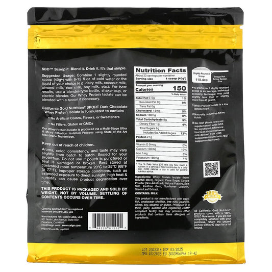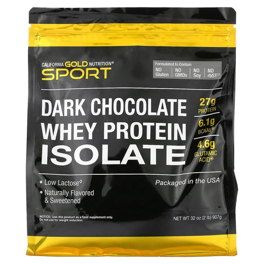 California Gold Nutrition SPORT - Dark Chocolate Whey Protein Isolate, 2 Lbs (907 G)