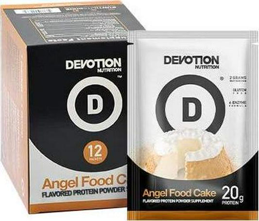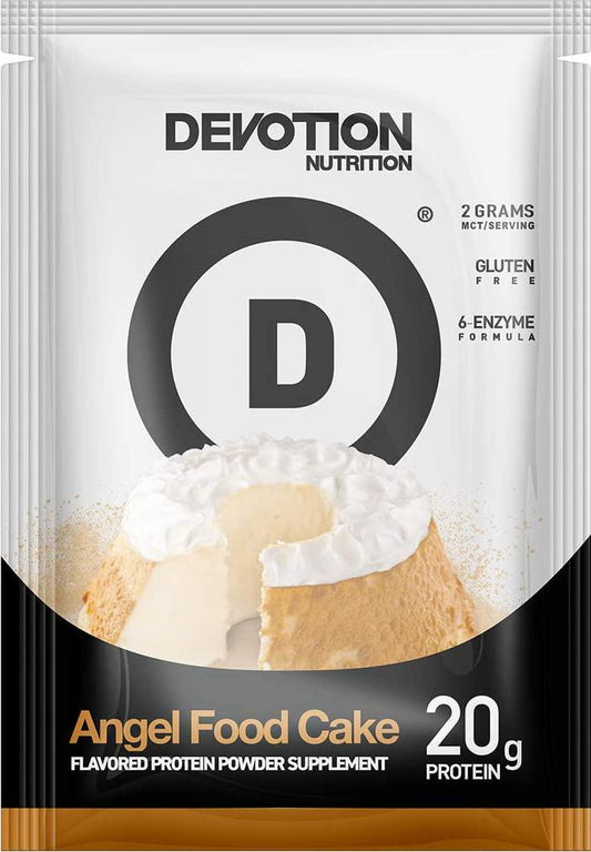 Devotion Nutrition Protein Powder Blend | Gluten Free, Keto Friendly, No Added Sugars | 2g MCTs | 20g Whey and Micellar Protein | 12 Single Serving Packets (Angel Food Cake) Packaging May Vary