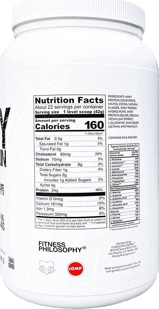 FITNESS PHILOSOPHY 100% Whey Protein Chocolate Powder with BCAAs