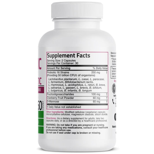 Bronson Women'S Probiotic 50 Billion CFU + Prebiotic with Cranberry & D-Mannose - Healthy Digestion, Immune Function and Urinary Tract Support, Non-Gmo, 60 Vegetarian Capsules