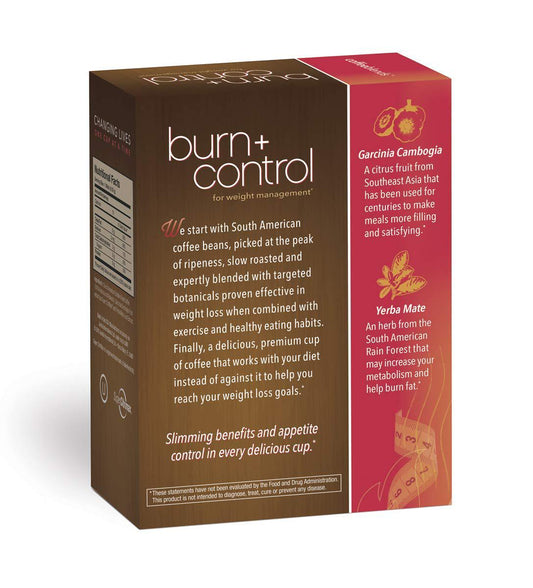 Burn + Control Coffee, Premium 100% South American Arabica, Robusta Blend Coffee, Weight Management Herbs, Garcinia Cambogia and Yerba Mate, Javita