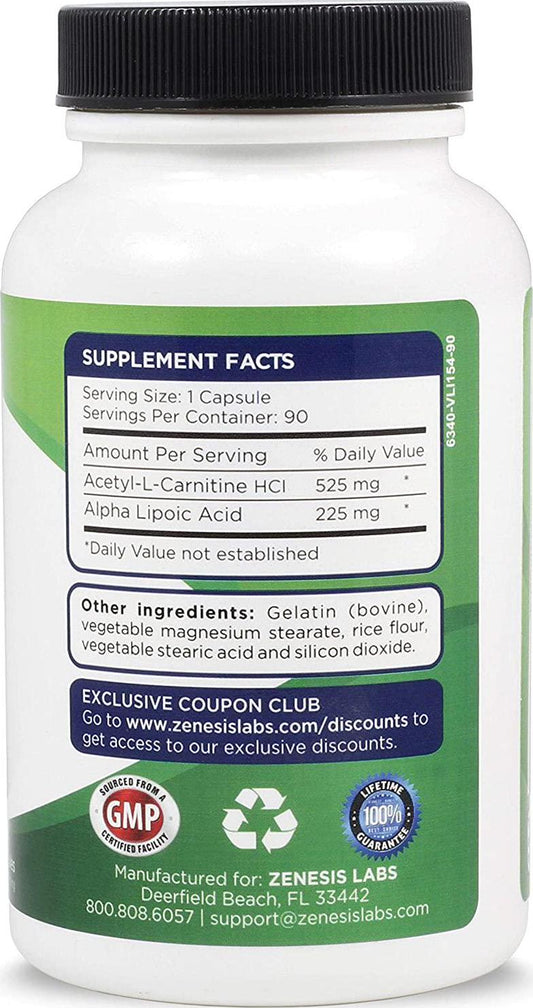 Acetyl L-Carnitine with Alpha Lipoic Acid - for Brain Health - 90 Capsules