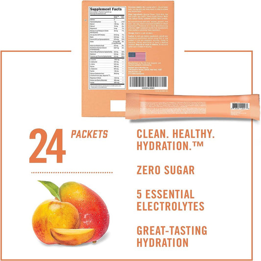 Biosteel Zero Sugar Hydration Mix, Great Tasting Hydration with 5 Essential Electrolytes, Peach Mango Flavor, 24 Single Serving Packets