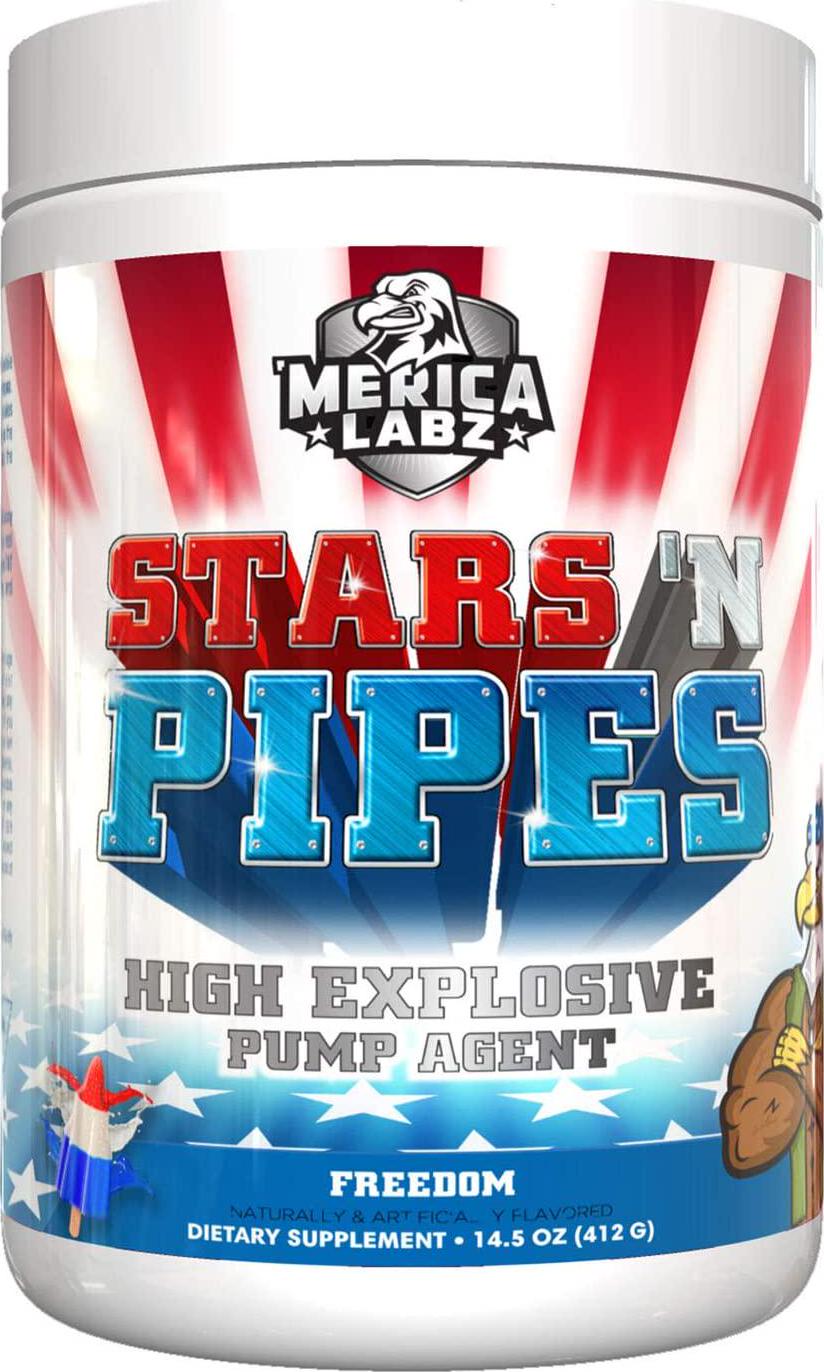 - &Lsquo;Merica Labz Stars &Lsquo;N Pipes - Freedom: A High Explosive Pump Agent Meet Your Best Weapon In The Fight Against Skinny Arms: Stars 'N Pipes, A Stim-Free Explosive Pump Agent Fit For A Real 'Merican Hero. Stars &Lsquo;N Pipes Is Formulated With Level-Citrulline, Hydromax Glycerol And Betaine To Help Take Your Pumps And Workouts To The Next Level. Contains 6000Mg L-Citrulline To Support Nitric Oxide Production, Which Helps Maintain Blood Vessel Tone